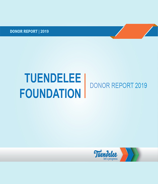 REPORTS Tuendelee publishes impact and donor reports as a bid to improve our transparency and uphold high standards of accountability in our operations. Impact Report – 2022 View Donor Report– 2019 View